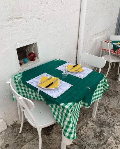 A table in Ostuni, Italy photographed by Tess Guinery, @tessguinery on Instagram
