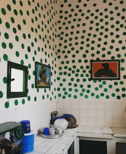 A DIY polka dotted kitchen in Senegal found via @molde.shop on Instagram
